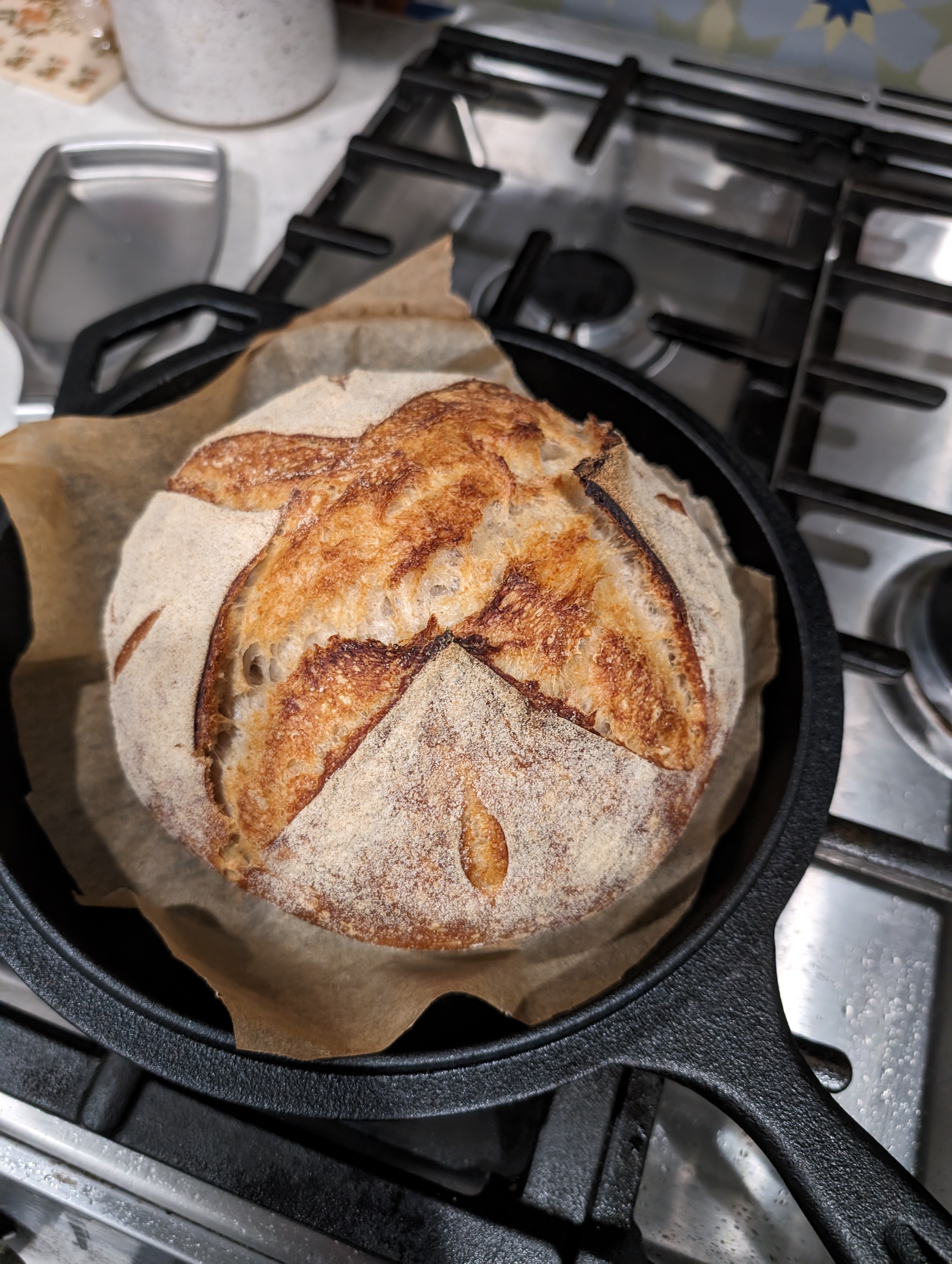 - Used a 9x9” glass pan with towels + the cast-iron bottom of the dutch oven + boiling water for steam