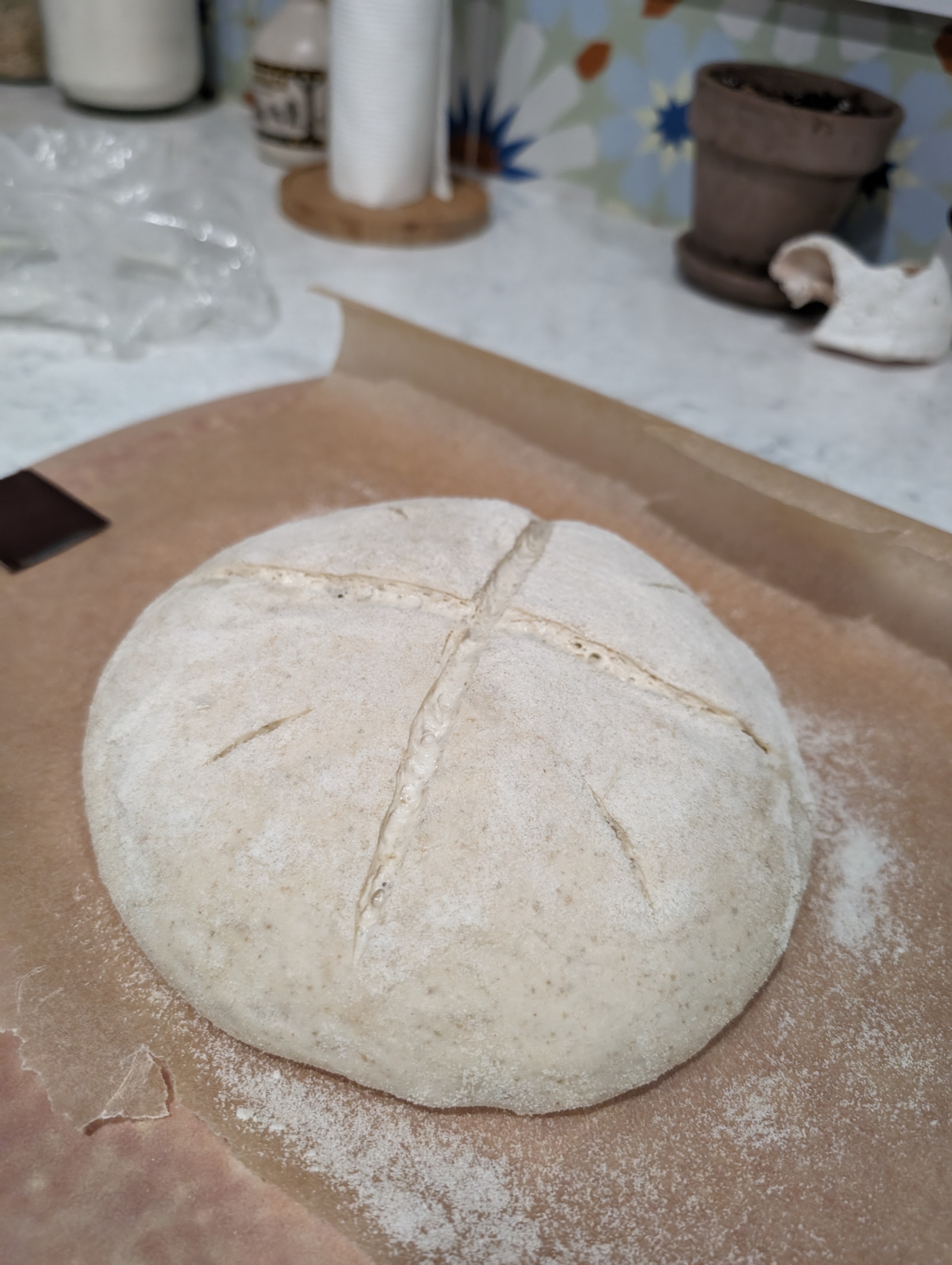 - The big guy I made into a boule, proofing on counter, should be ready for baking around 5:45