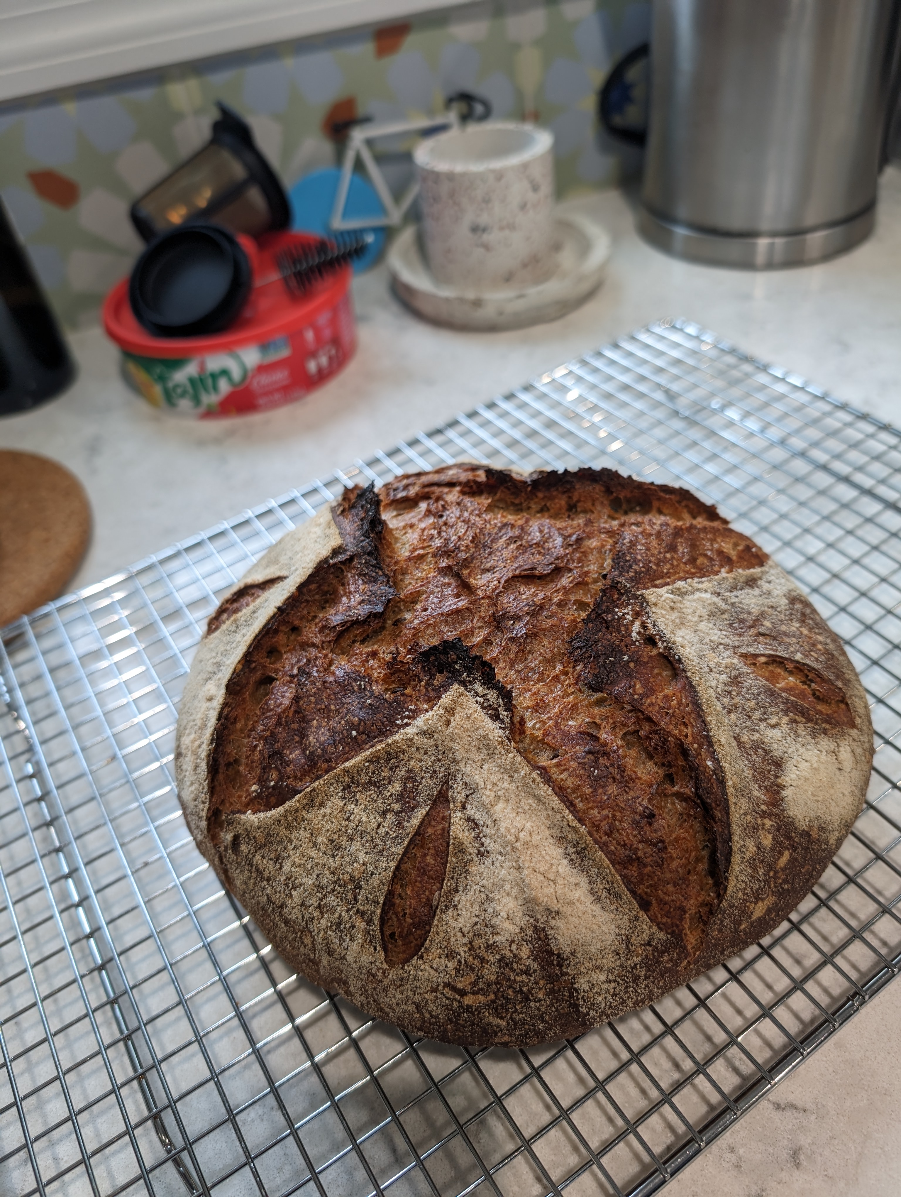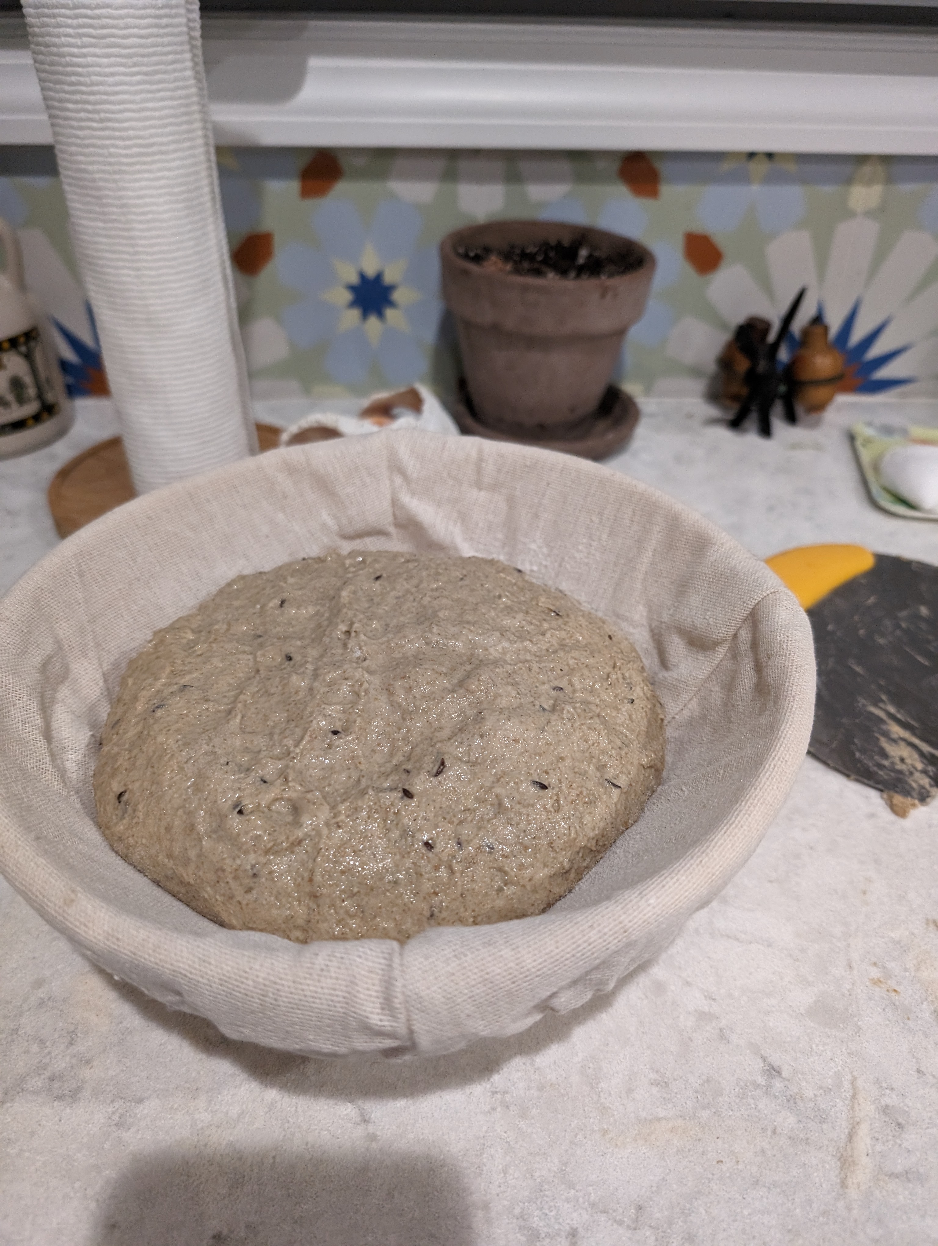 - Added (toasted) caraway seeds to the initial autolyse (didn’t add the salt until stretch+fold 1)